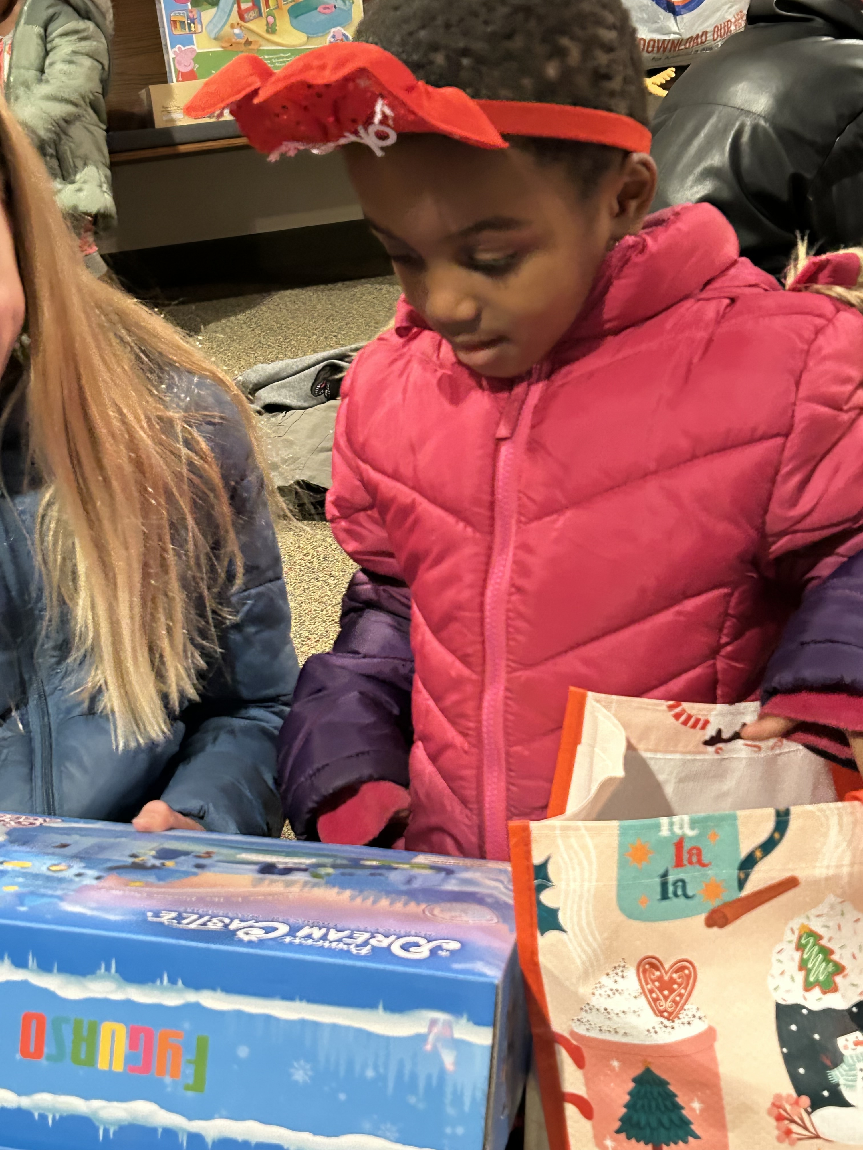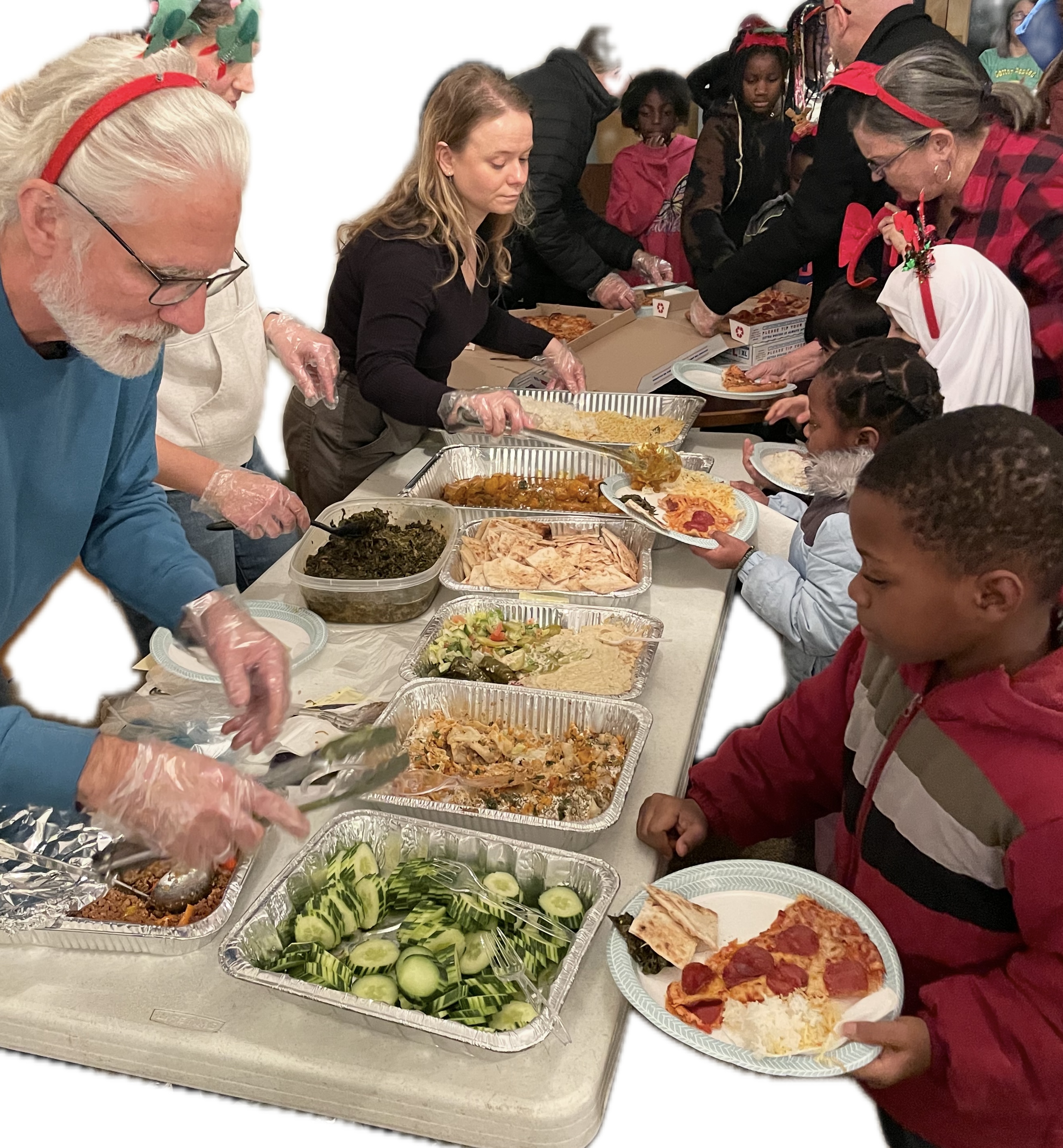 At the party, we feasted on a multicultural buffet – everything from pizza to African, Afghan, and Karen dishes. A fun relay game had students racing across the room with candy canes hanging from spoons. And, of course, like any kids, they were just patiently biding their time until the main event in their eyes – the gift bags provided by a local church.